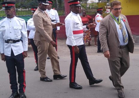(Custos Joey Issa, right) after examining the parade outside the St Ann Parish Library)