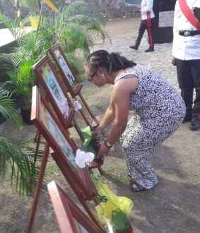 Floral tributes were laid to all seven National Heroes whose photos were displayed. The tributes came after the reading of a citation to each.