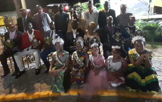 (Honourees seated with sponsors behind them and several contestants from the Mini Miss St Ann Heritage Competition in front)