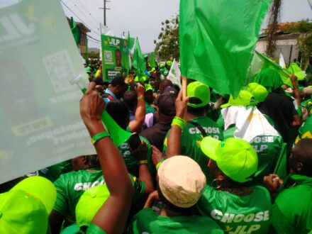 (JLP supporters on Main Street, Gayle)