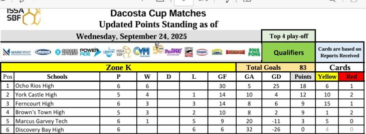 Based on performance so far, Ocho Rios is almost sure to top Zone K, with either Ferncourt or York Castle most likely to be the other, although Brown’s Town could have something to say about that.