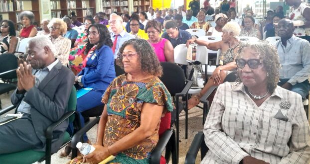 (A section of the audience at the lecture, Prof Wint is at front left and beside him Maisie Wint; at right, is former Custos Norma Walters)