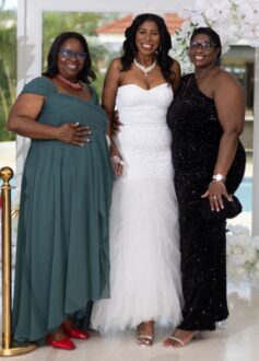 The culinary experience, catered by Black’s Delectables, was a feast of fine dining, featuring oven-jerked honey-glazed chicken, coconut shrimp, barbecue pork, grilled lobster, basmati rice, and Greek salad, among other dishes. The authentic Jamaican fruitcake, beautifully decorated in fondant, was a creation of Muffet’s Passions, while the stunning décor was the work of Maureen Hylton.