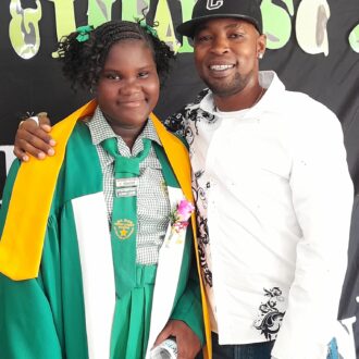 (Top girl Karnielia Brown poses with father Lenroy Brown at the end of the ceremony)