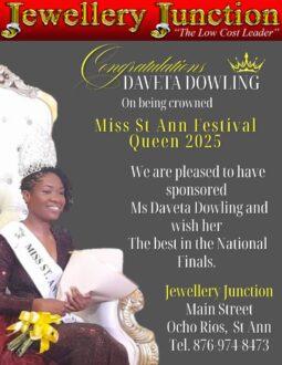 Her sponsor, Jewellery Junction, is happy to have sponsored her and wishes her a good reign and success in the National Festival Queen Competition.